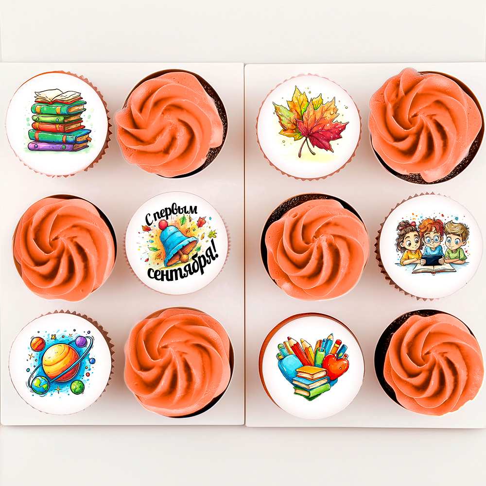 Капкейки - 1 сентября 12 шт - мастика и крем