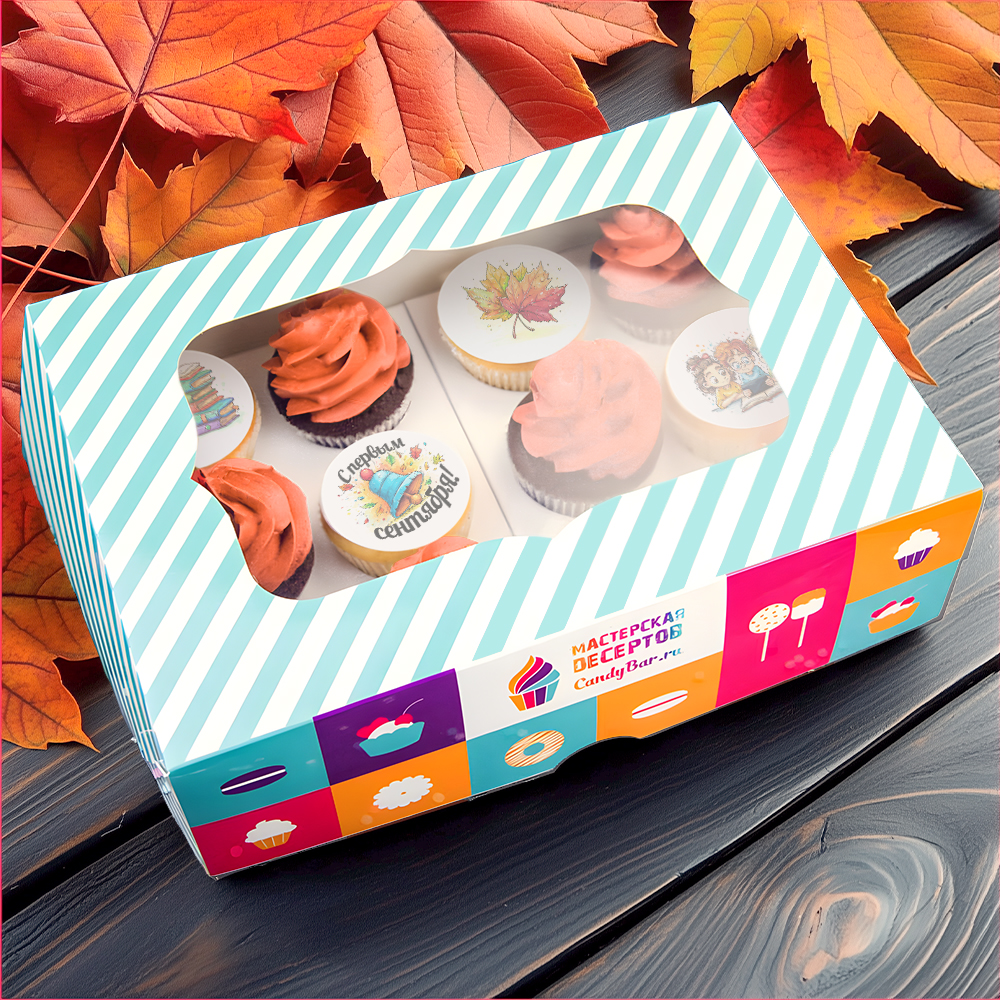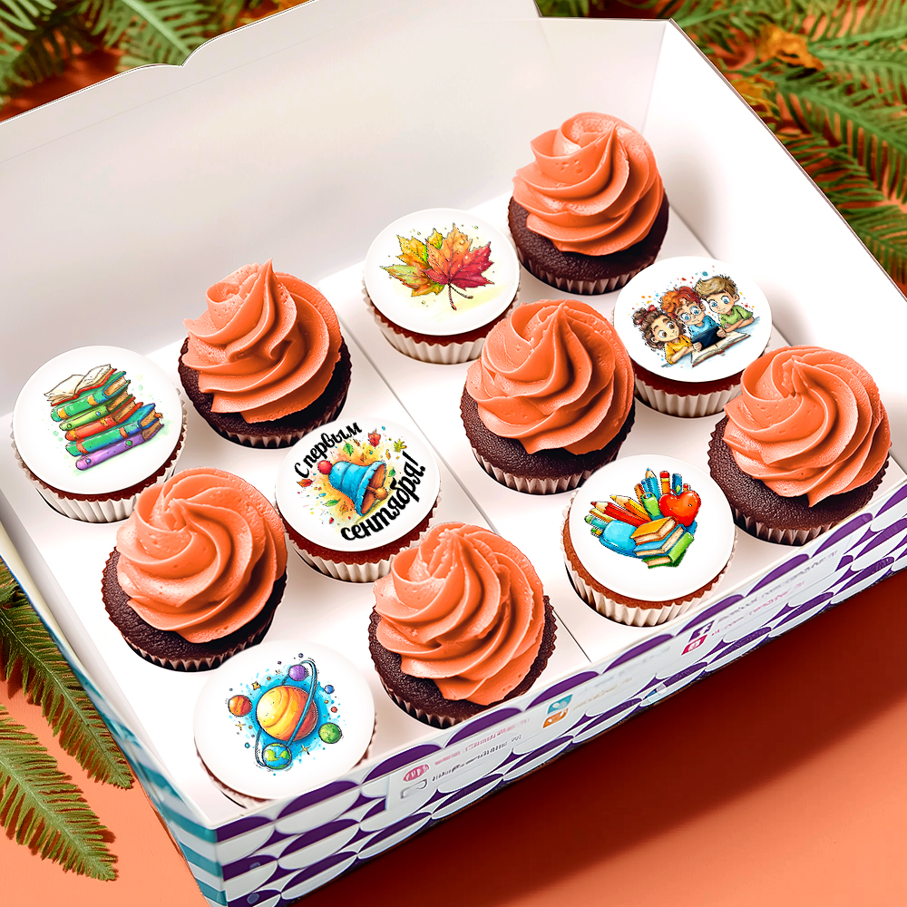 Все описаниеНабор из 12 капкейков с печатью тематических изображений и капкейков с кремом
