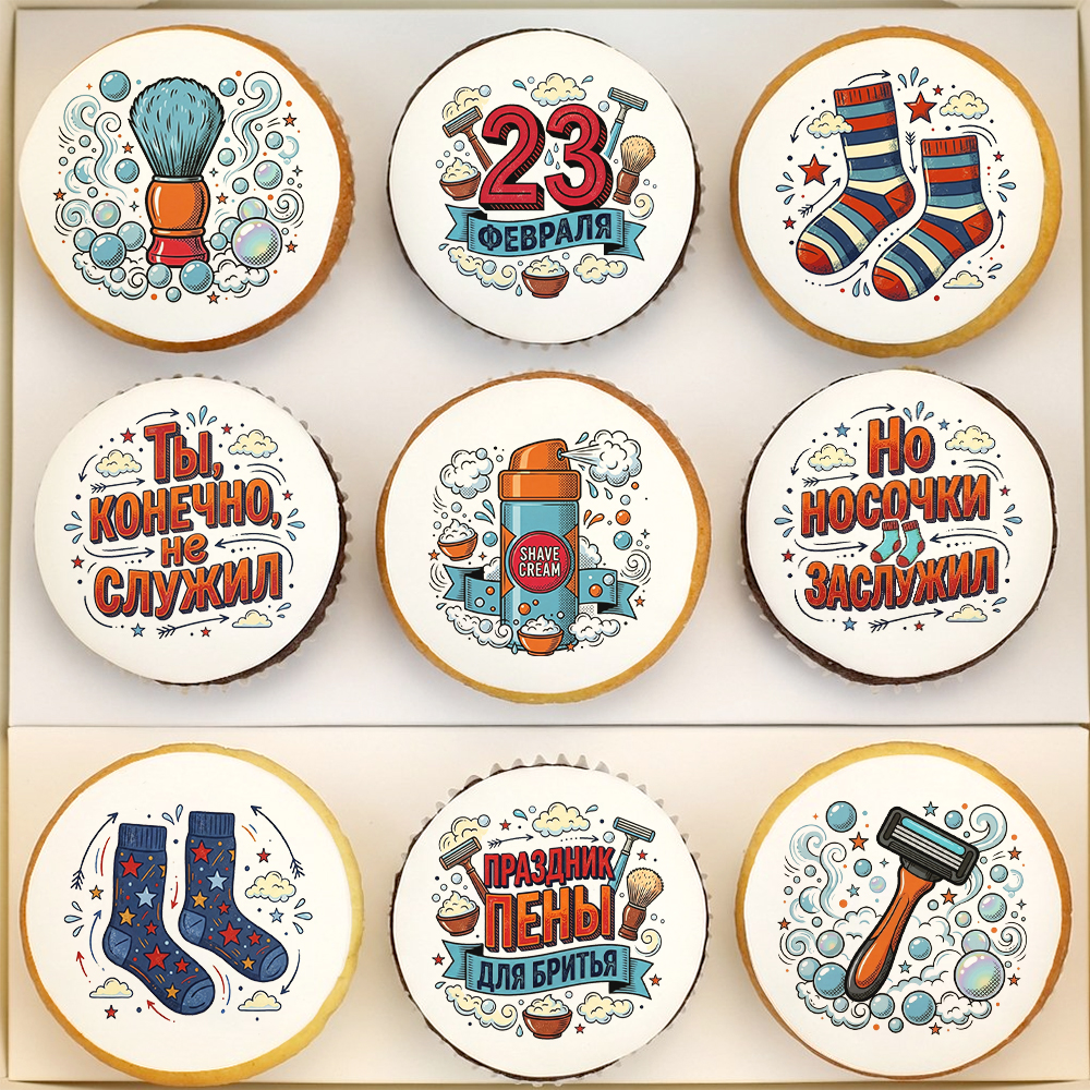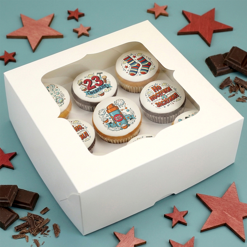 Все описаниеНабор ванильных и шоколадных бисквитных пирожных с нежным кремом внутри - удивите ваших друзей и любимых сладким подарком! Веселые съедобные принты на сахарной мастике точно поднимут им настроение.