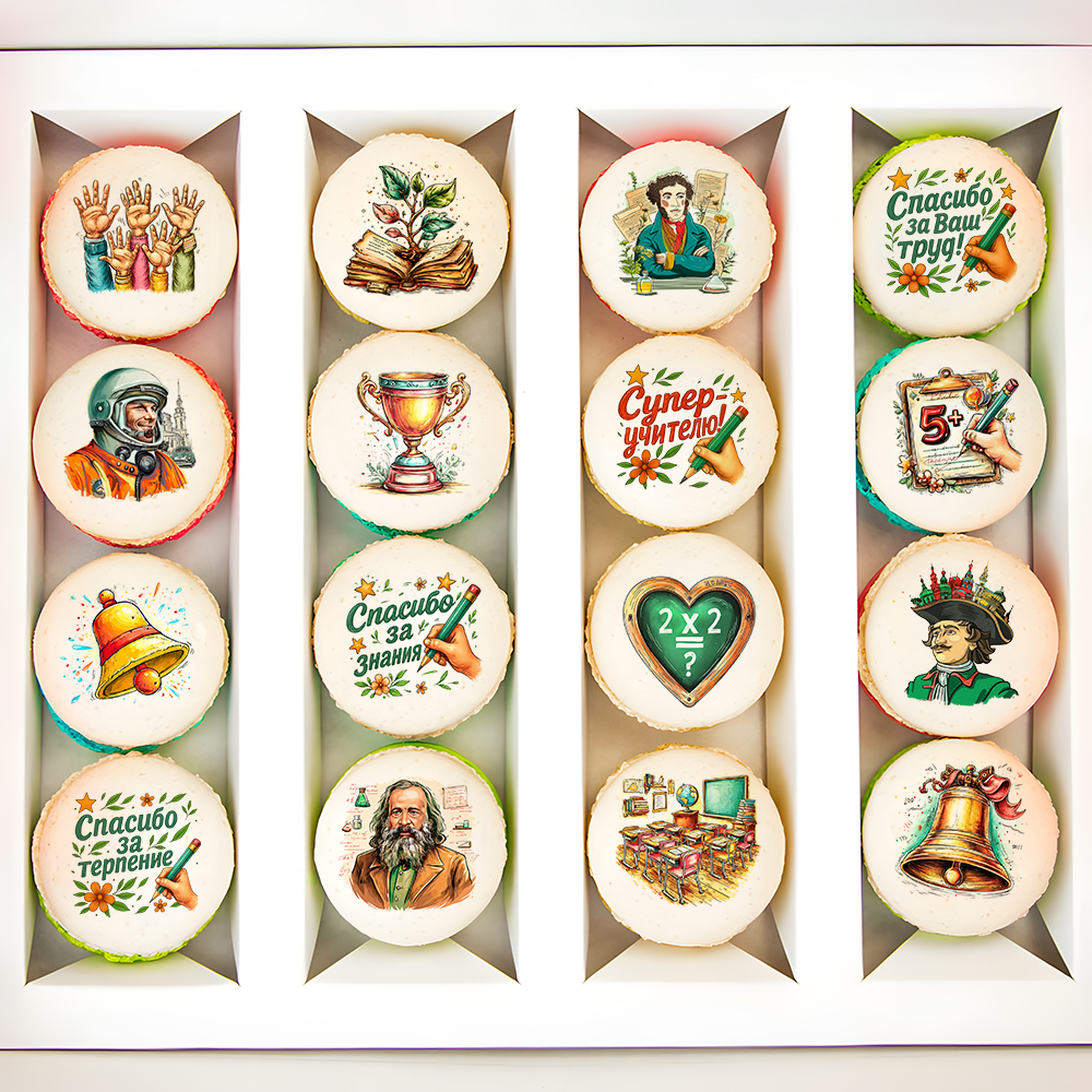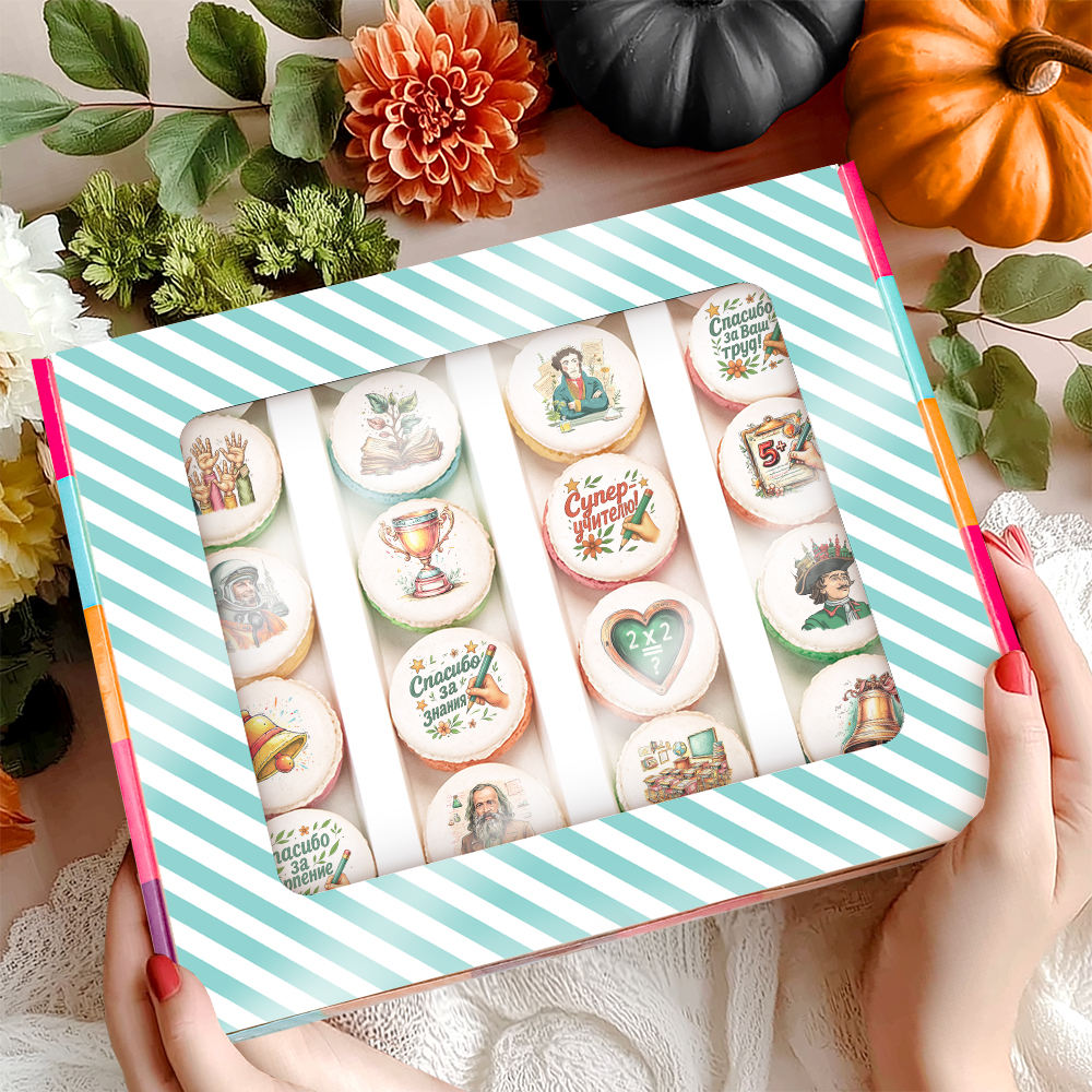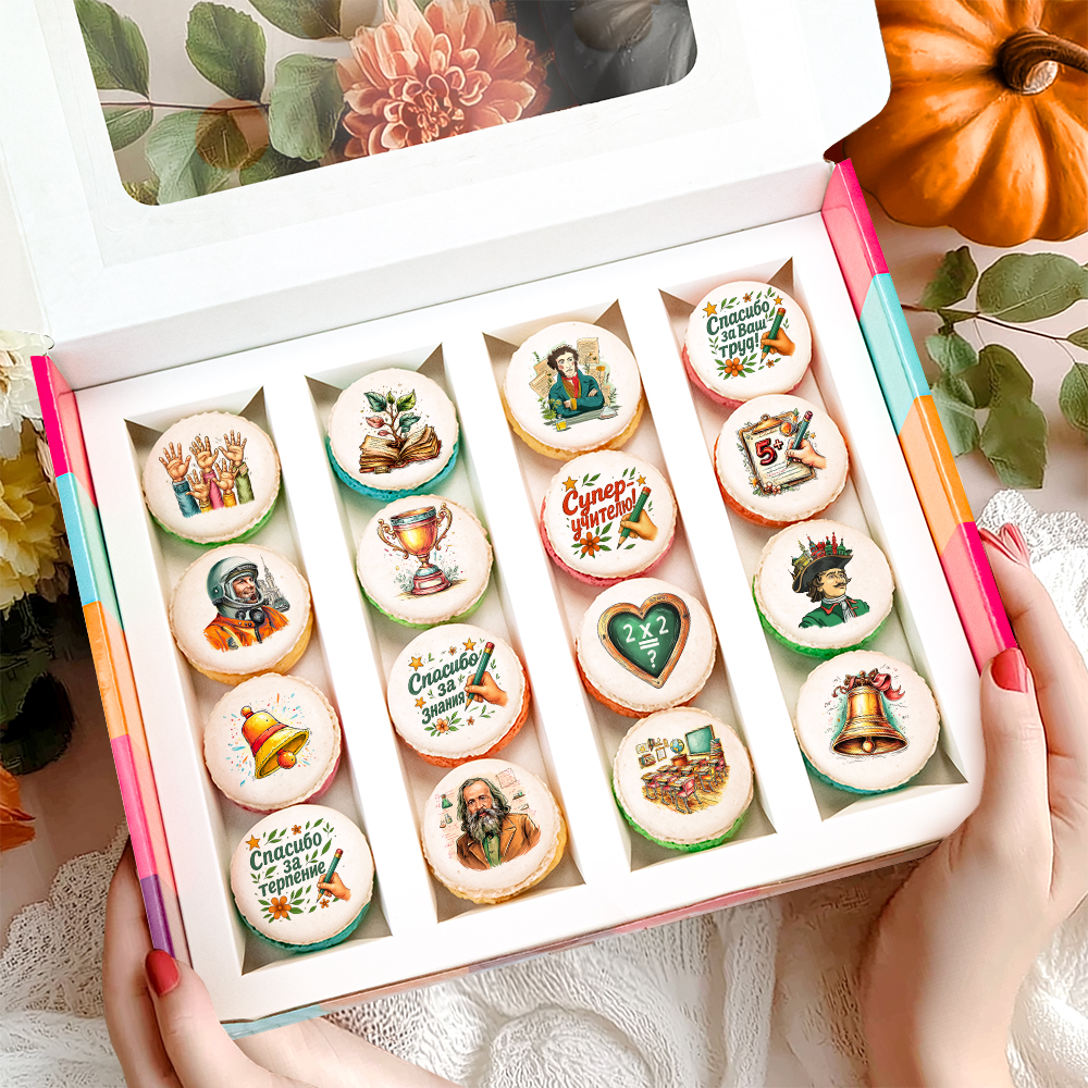 - Сахарная пудра, миндальная мука, белок, фруктовая/кремовая начинка