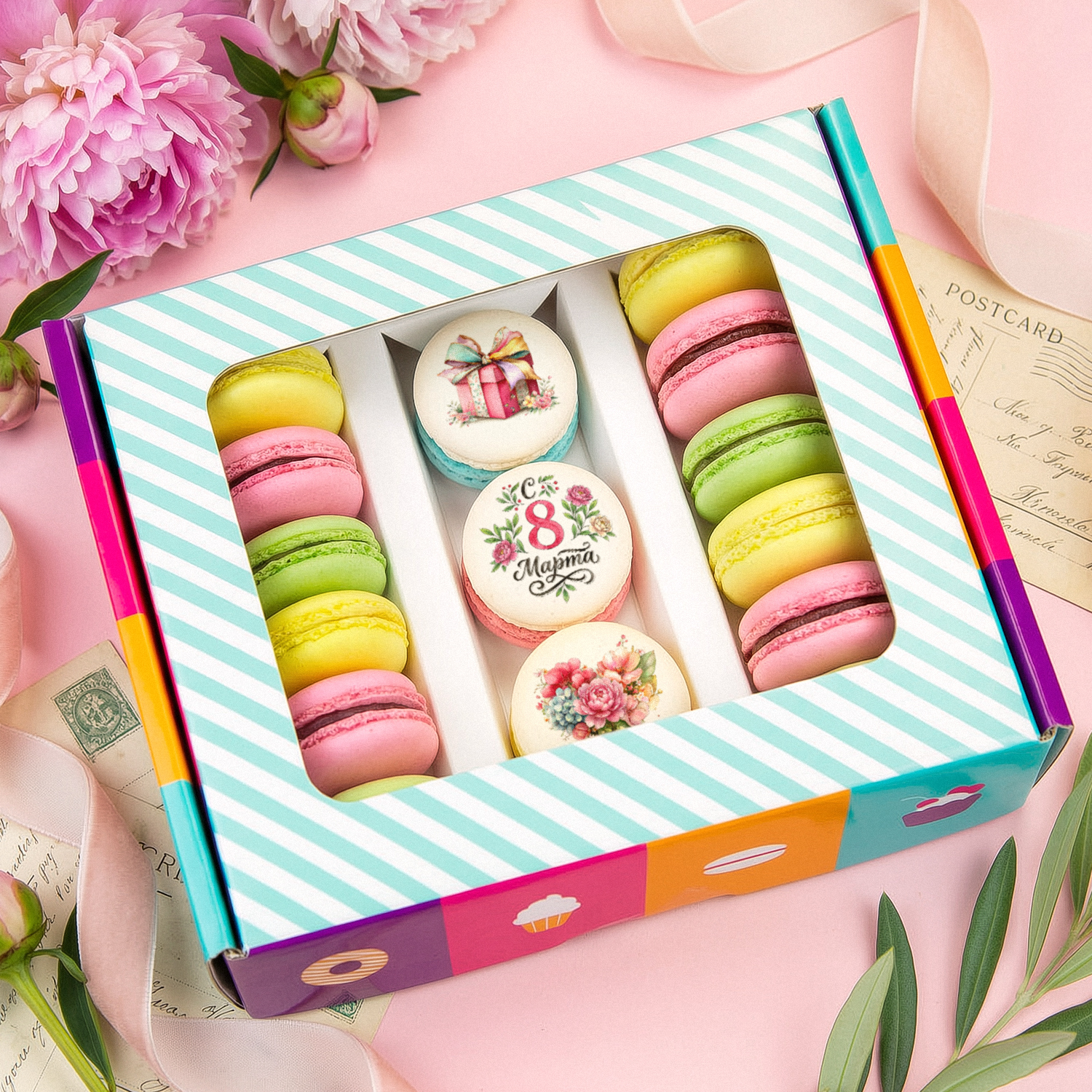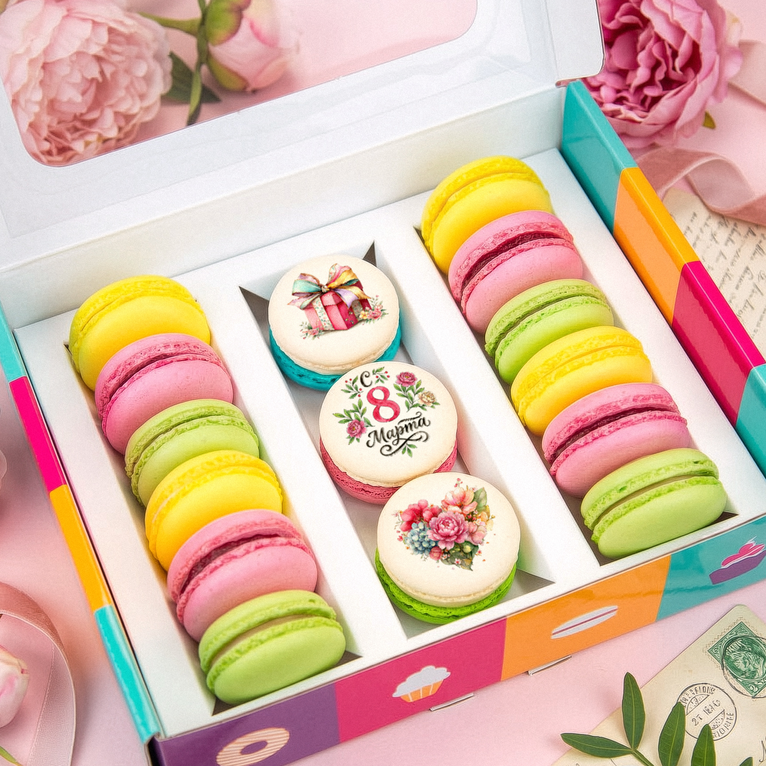 Макаруны "Подарок на 8 марта", 15 шт
