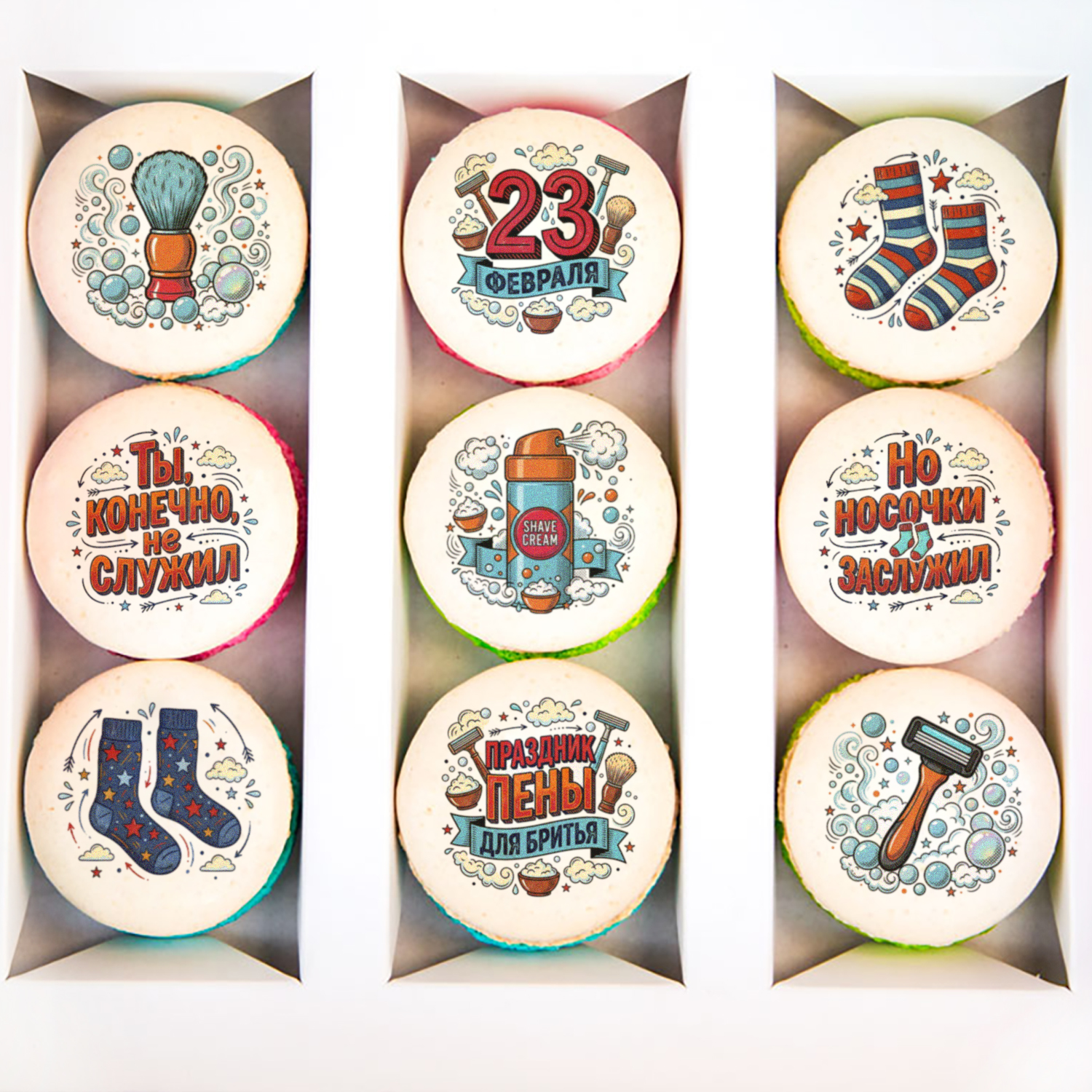 - Сахарная пудра, миндальная мука, белок, фруктовая начинка