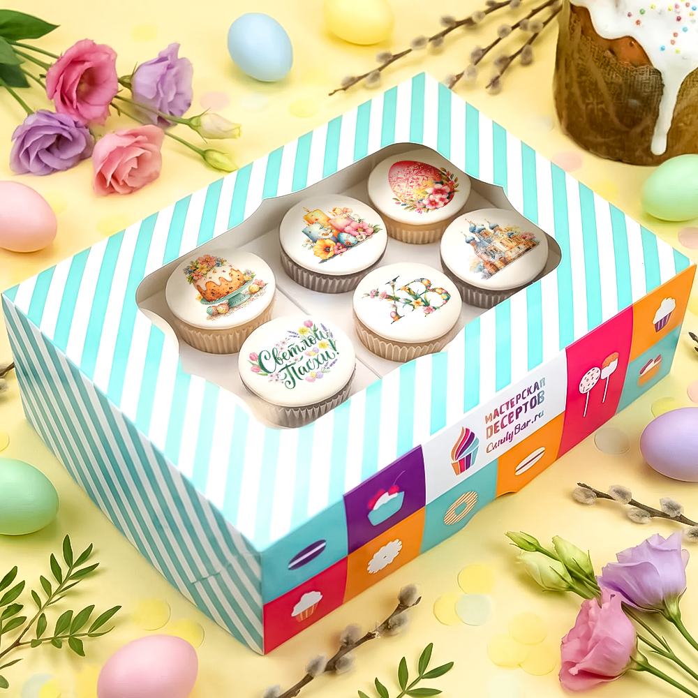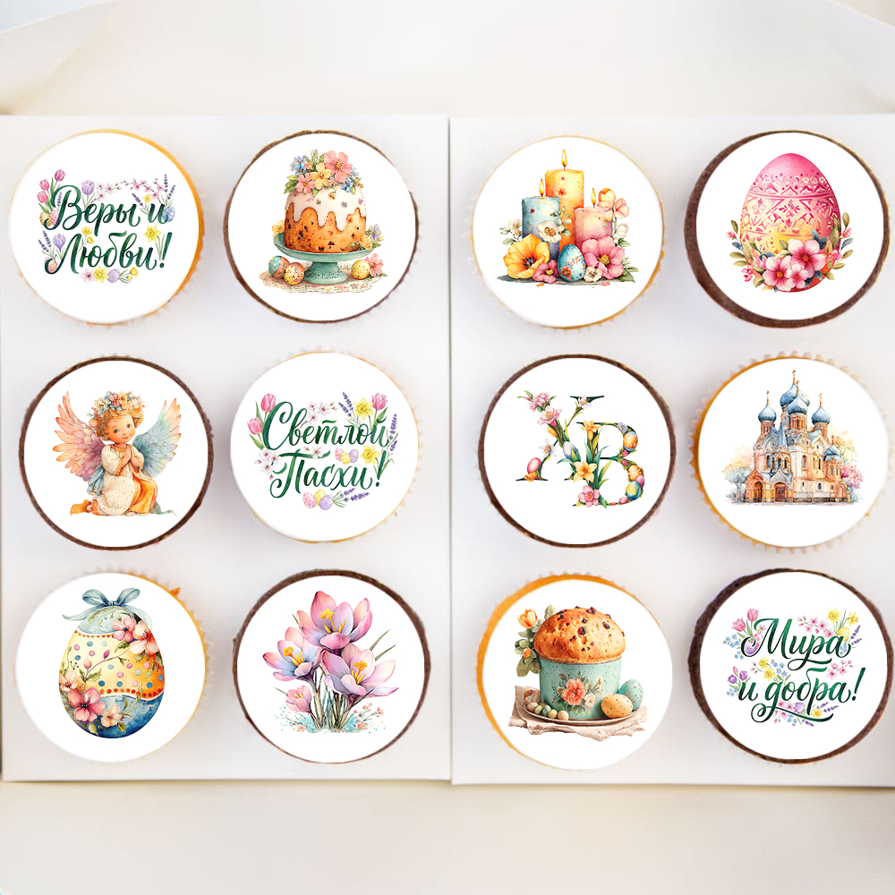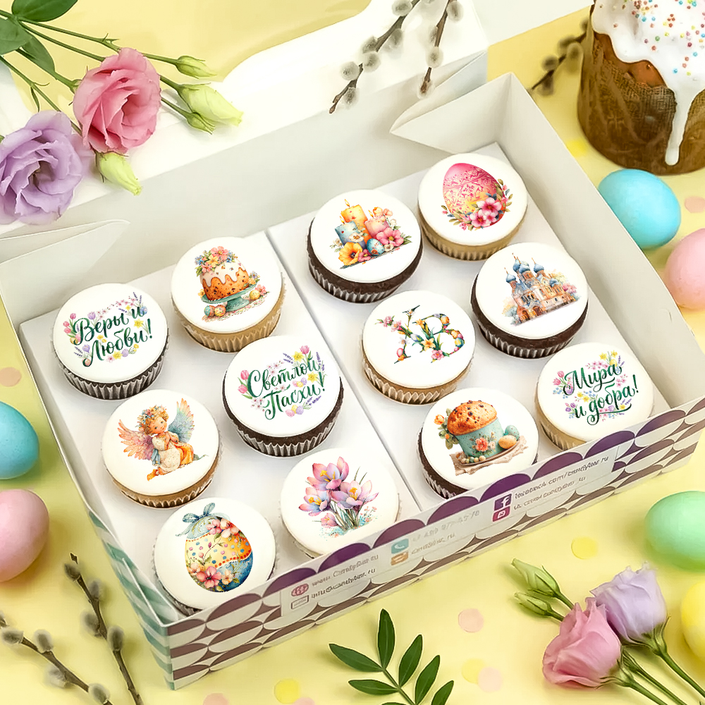 Набор капкейков "С праздником Светлой Пасхи!" 12 шт
