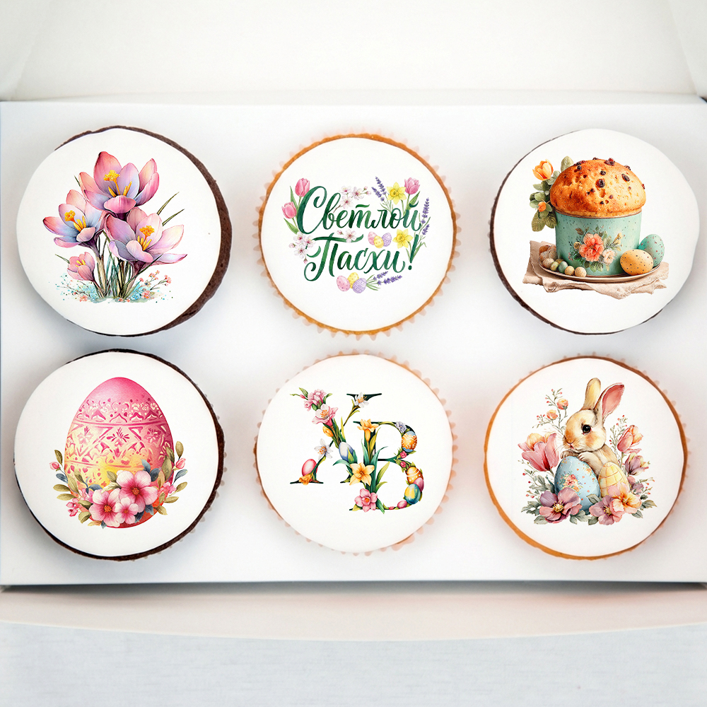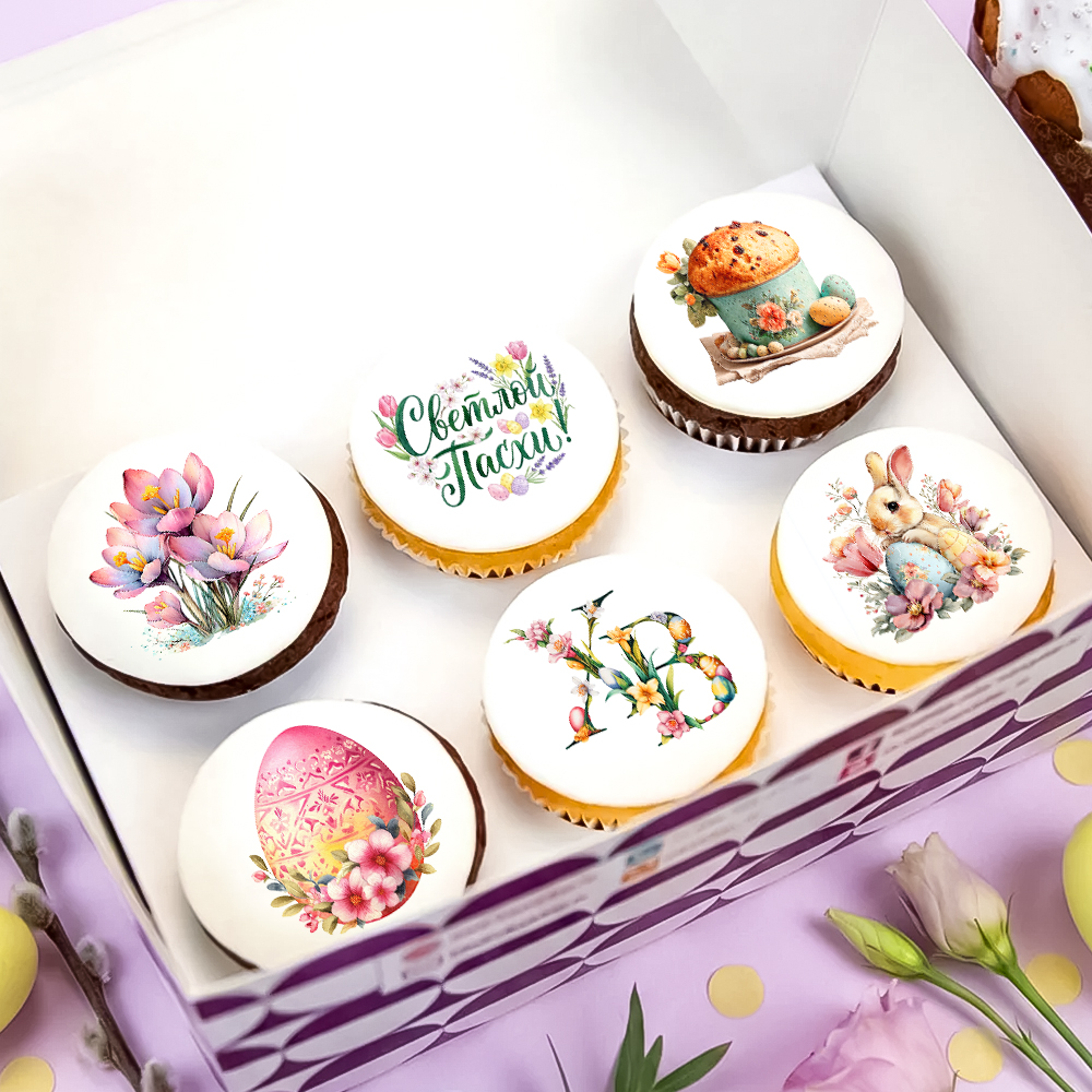 Набор капкейков "С праздником Светлой Пасхи!" 6 шт