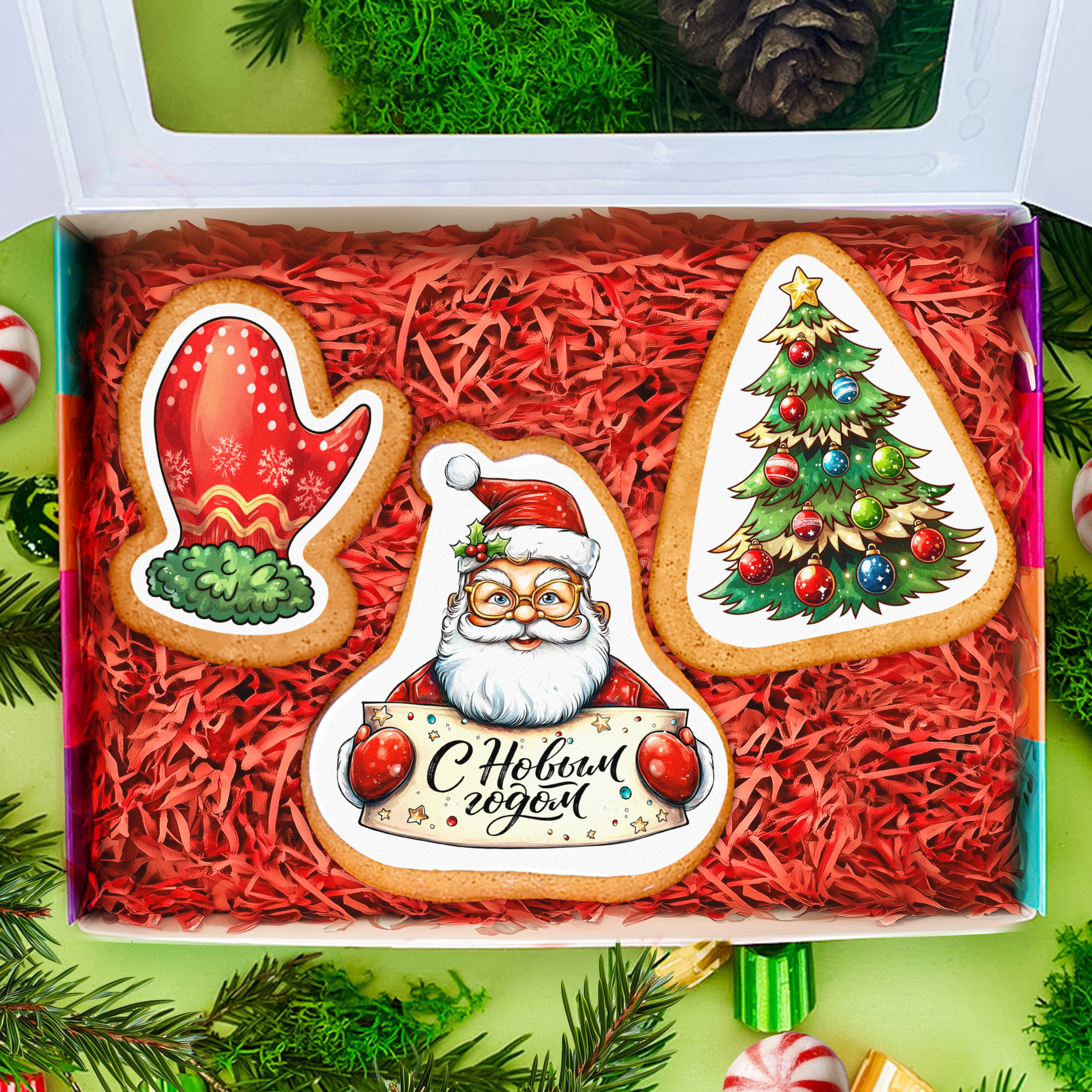 Имбирное печенье - традиционный подарок на Новый год. У нас вы можете купить недорогой набор из 3 пряников, чтобы поздравить ваших близких.