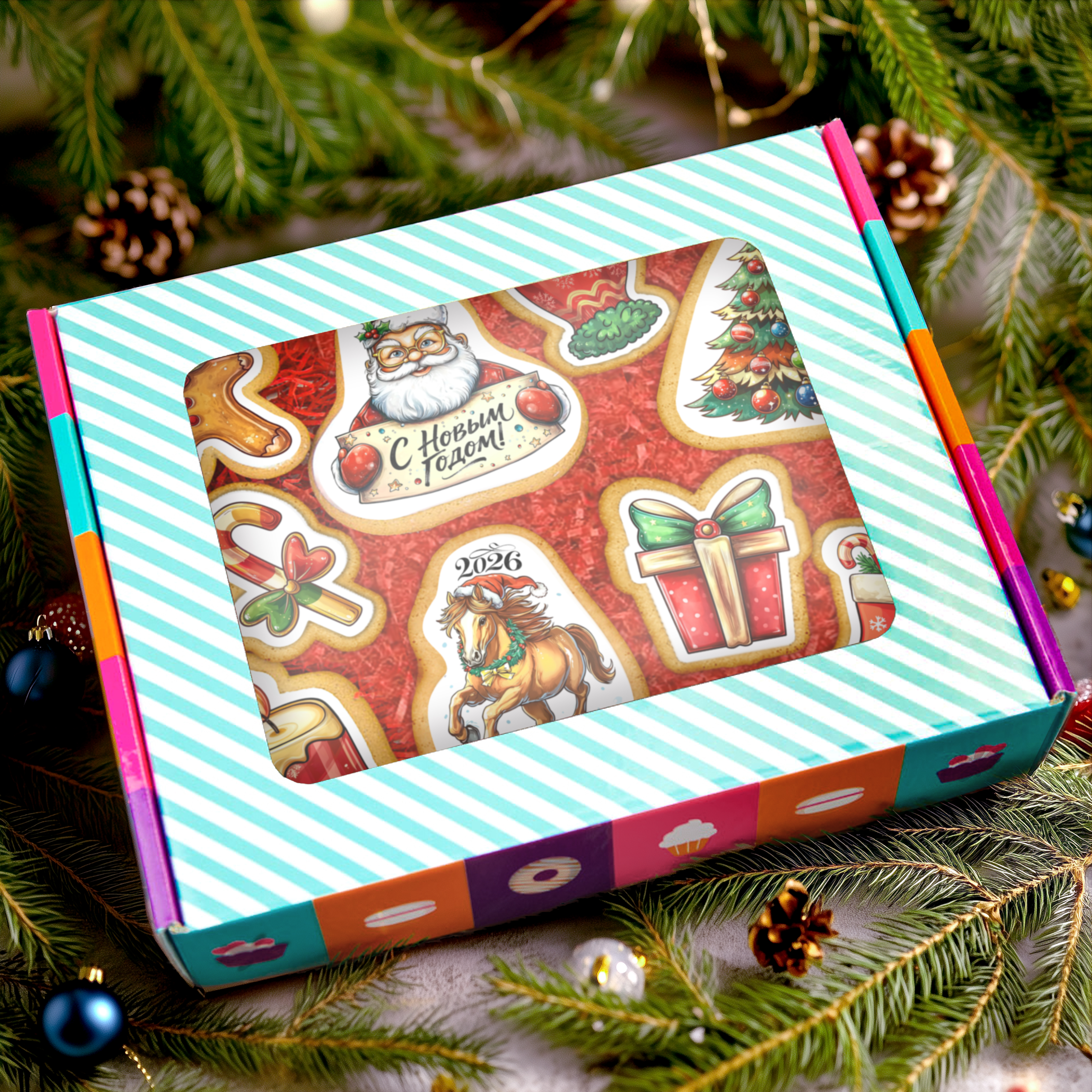 Новогодний подарочный набор имбирного печенья - пряники в форме символов Нового года в красивой коробке.