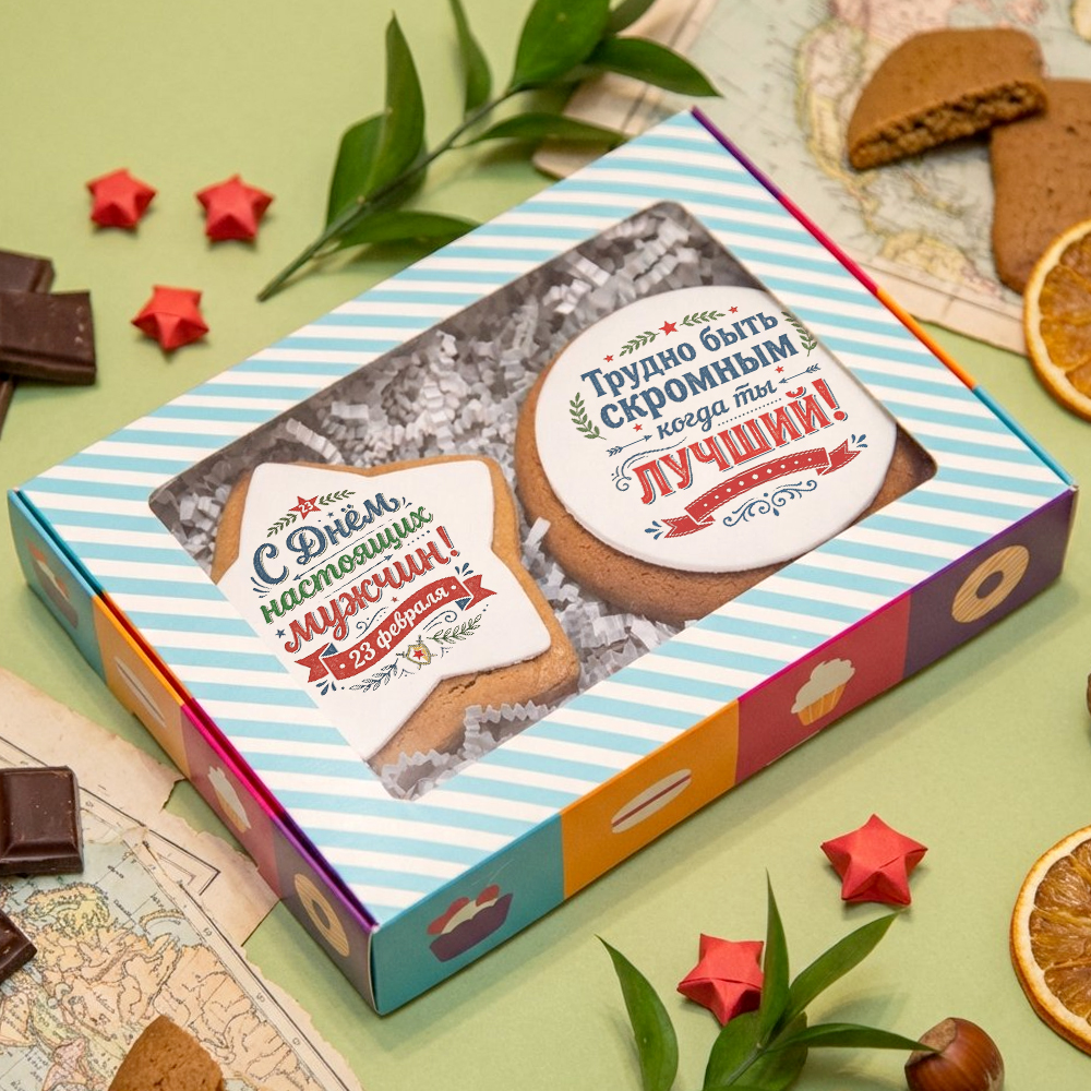 Солидным мужчинам - солидные подарки! Набор пряников "Настоящему мужчине" упакован в лаконичную крафтовую коробку и состоит из двух медово-имбирных пряников с мастикой. Размеры коробочки - Отличный вариант поздравить своих коллег, близких и родных, партнеров по работе. *Вы можете заказать печать логотипа на любом печенье или прянике, любую форму печенья.
