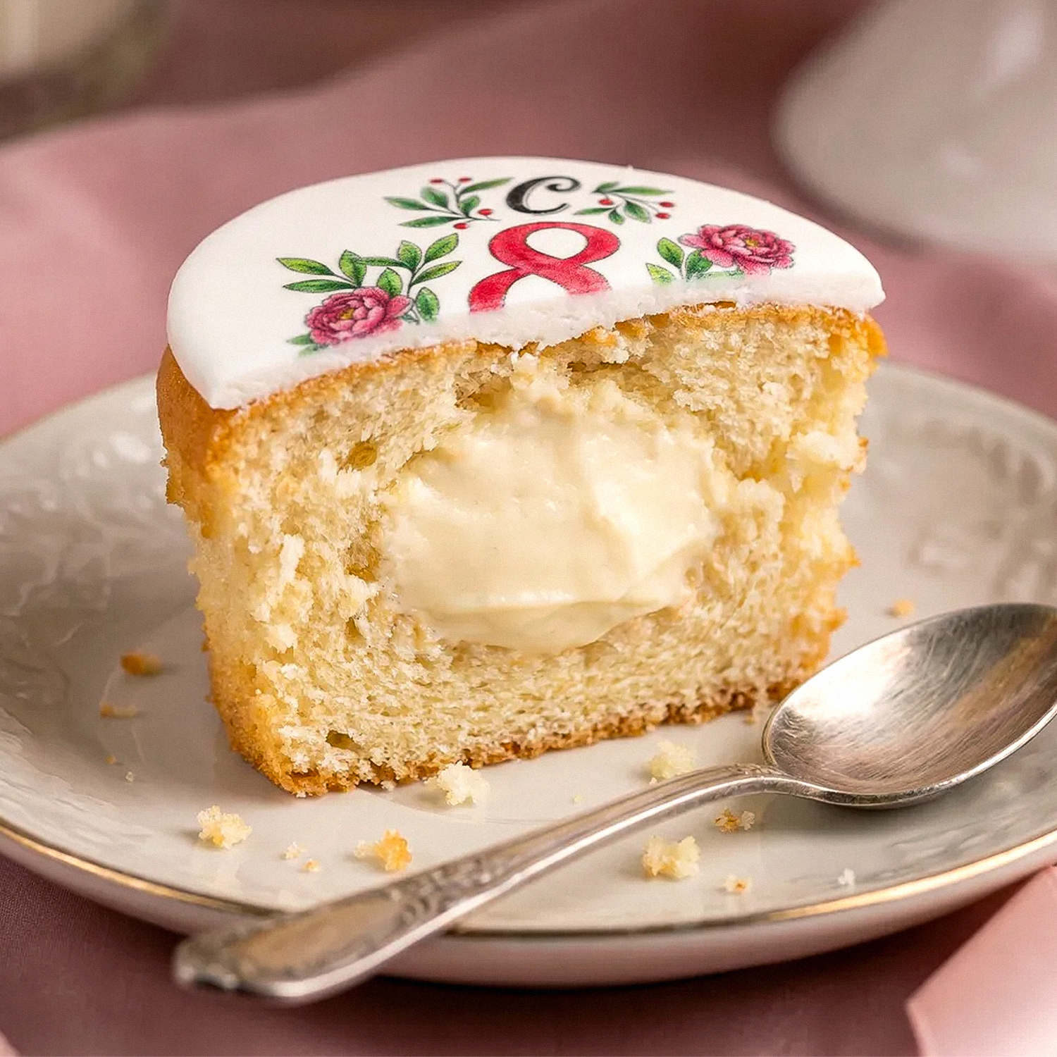 Все описаниеБисквитное пирожное со сливочным кремом внутри и сладкой мастикой со съедобным принтом.