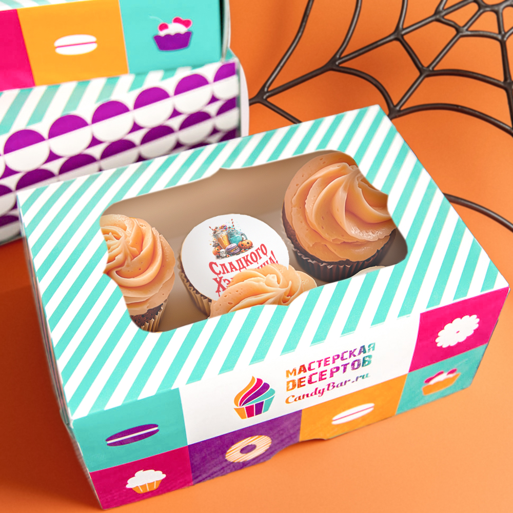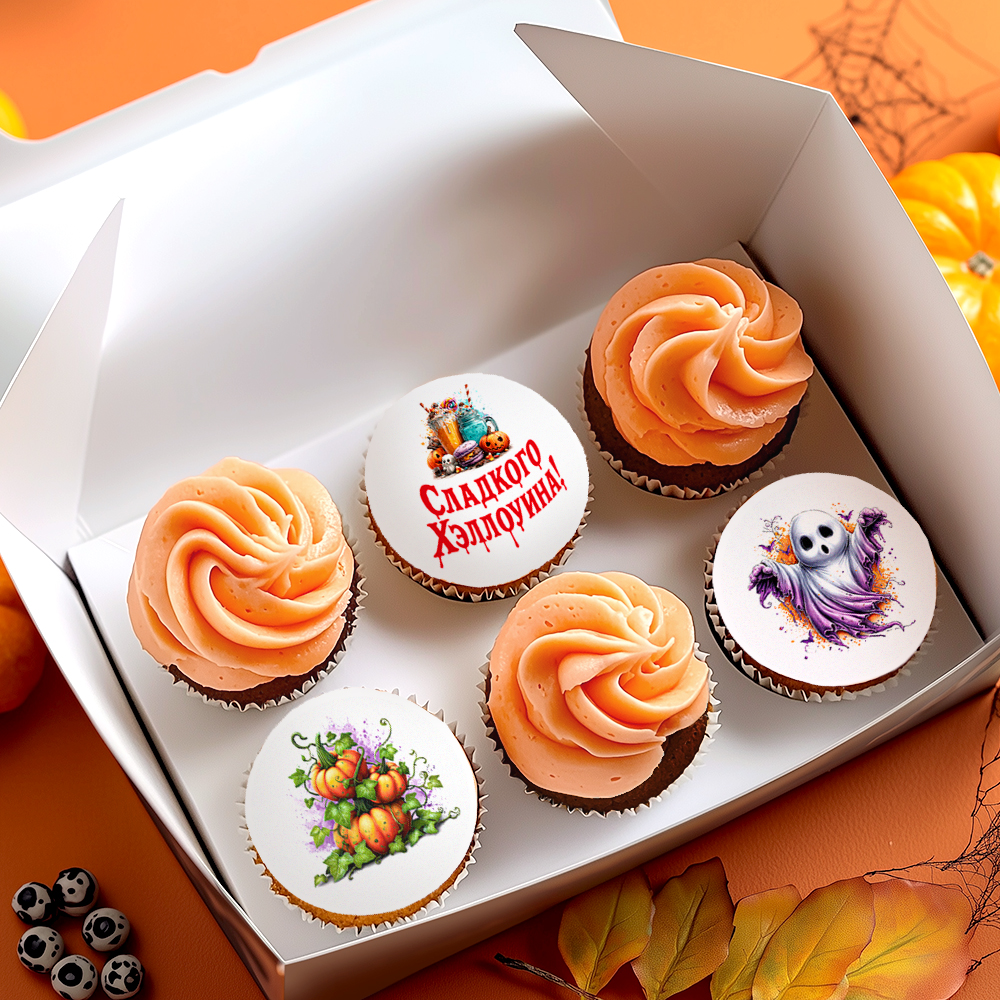 Капкейки "Happy Helloween" с кремом и мастикой - 6 шт.