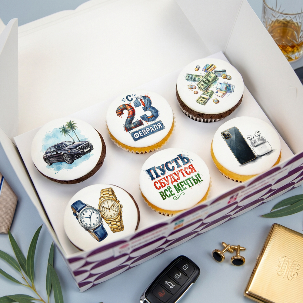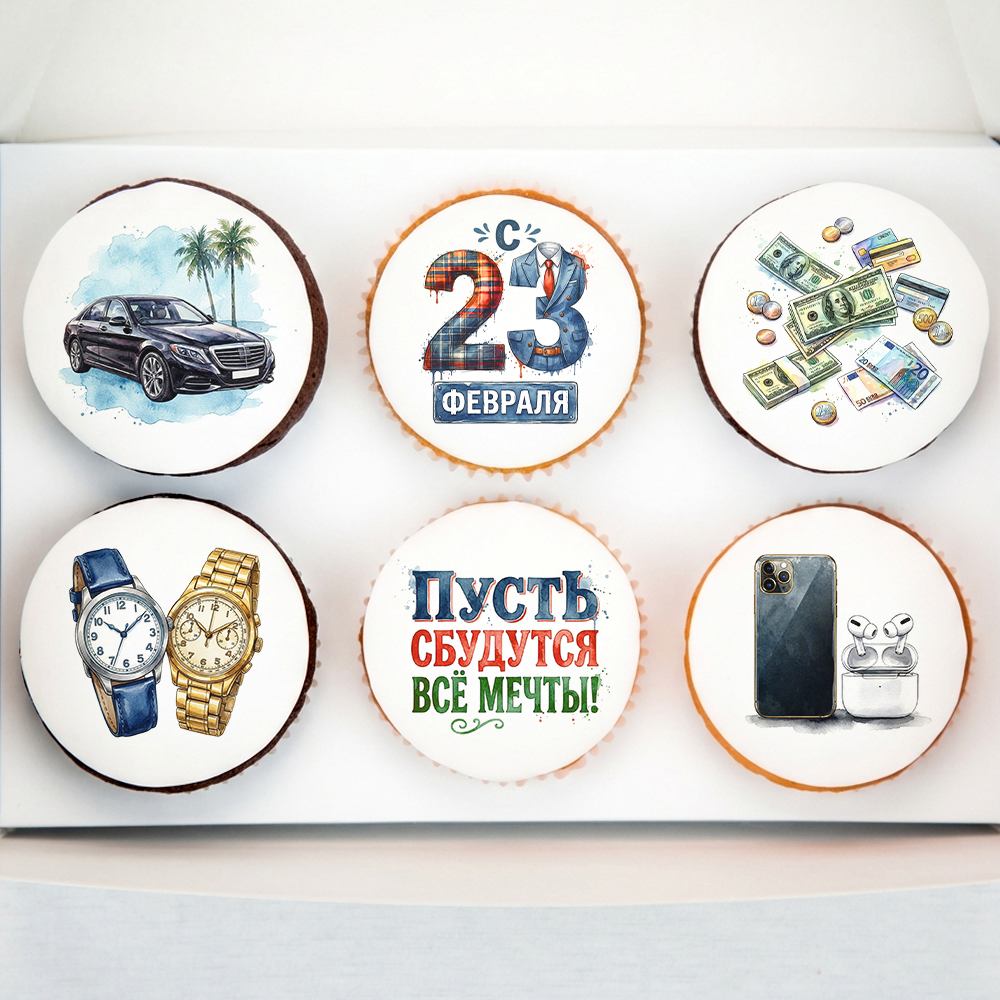 Капкейки "Мечты в реальность" на 23 февраля 6 шт
