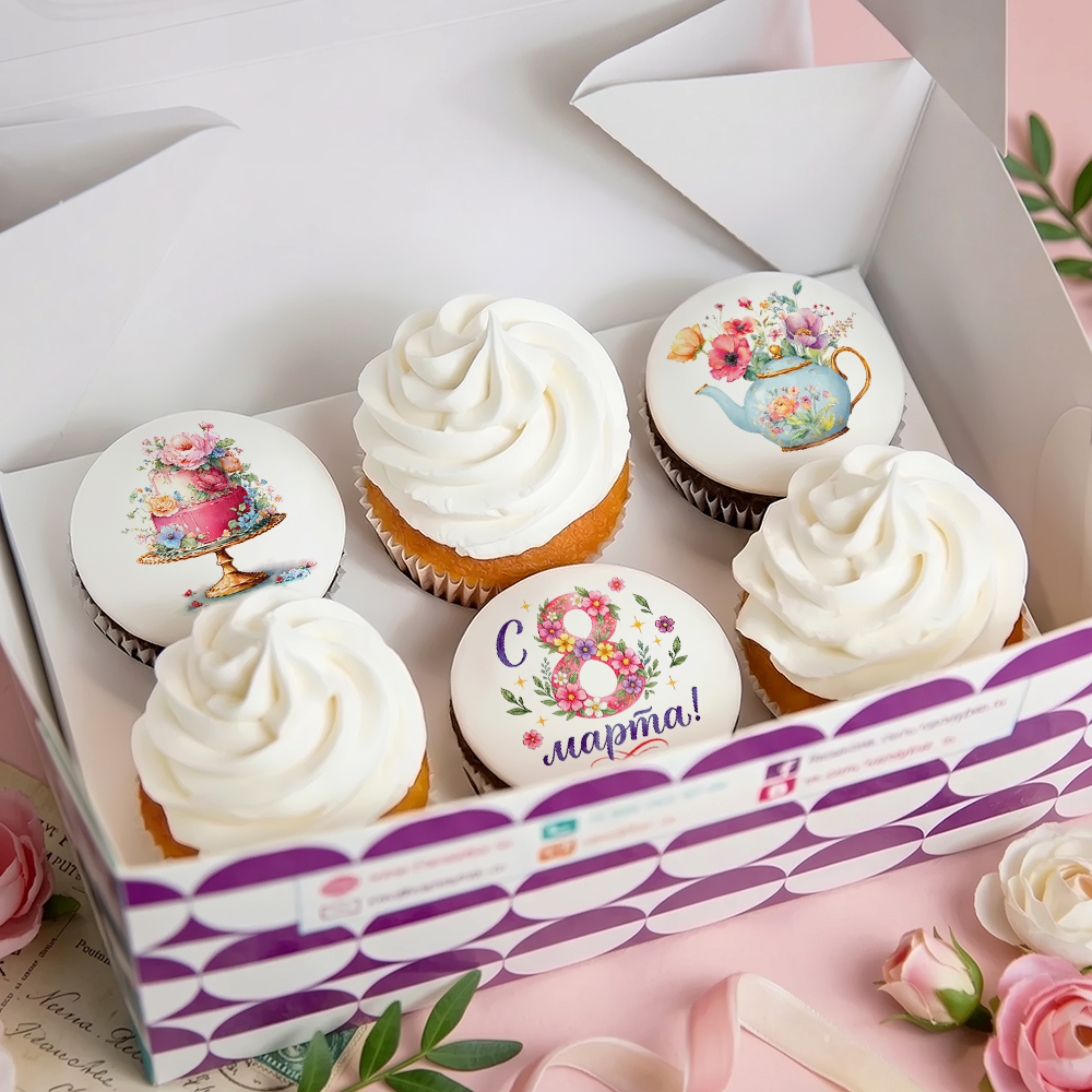1 Капкейки - С 8 марта 6 шт