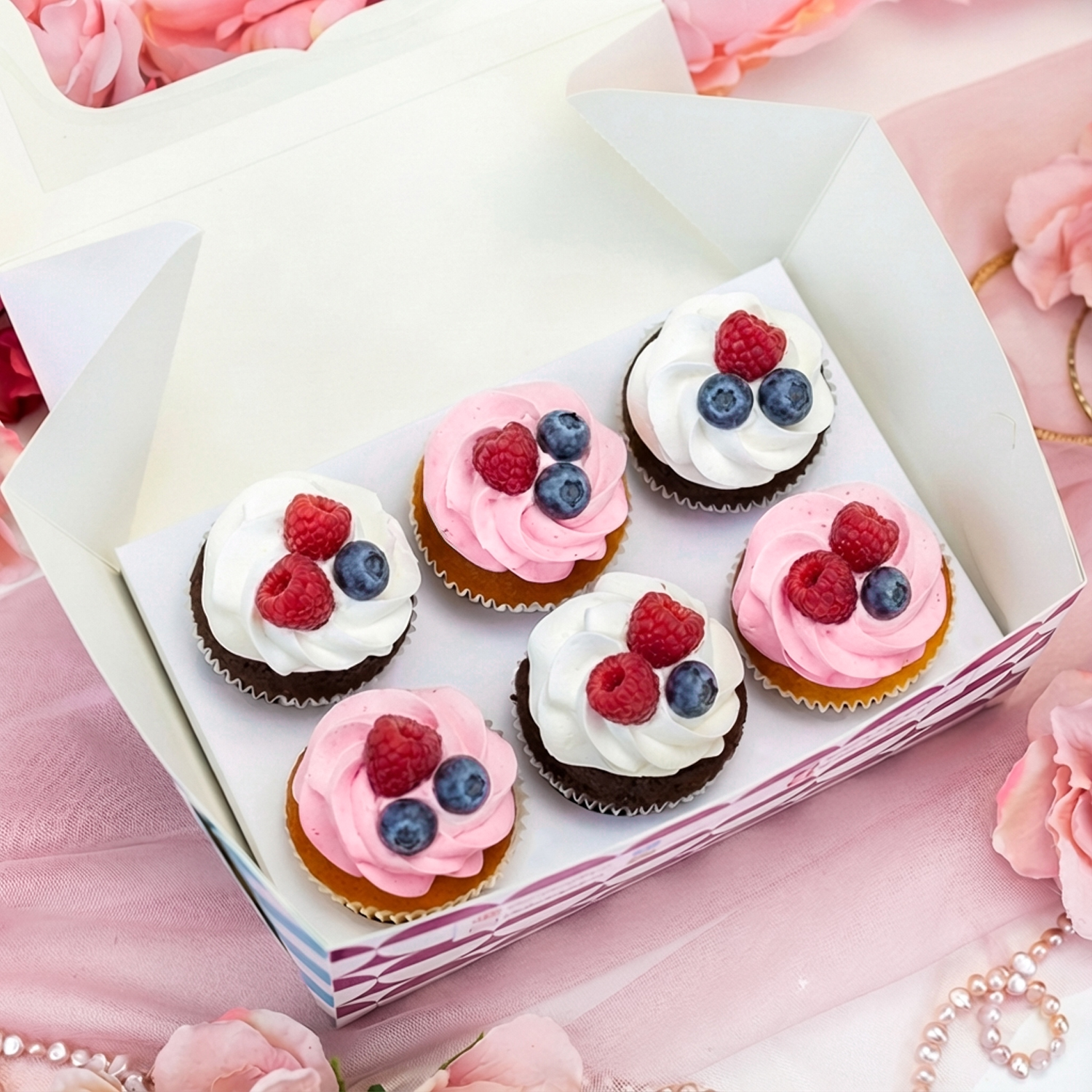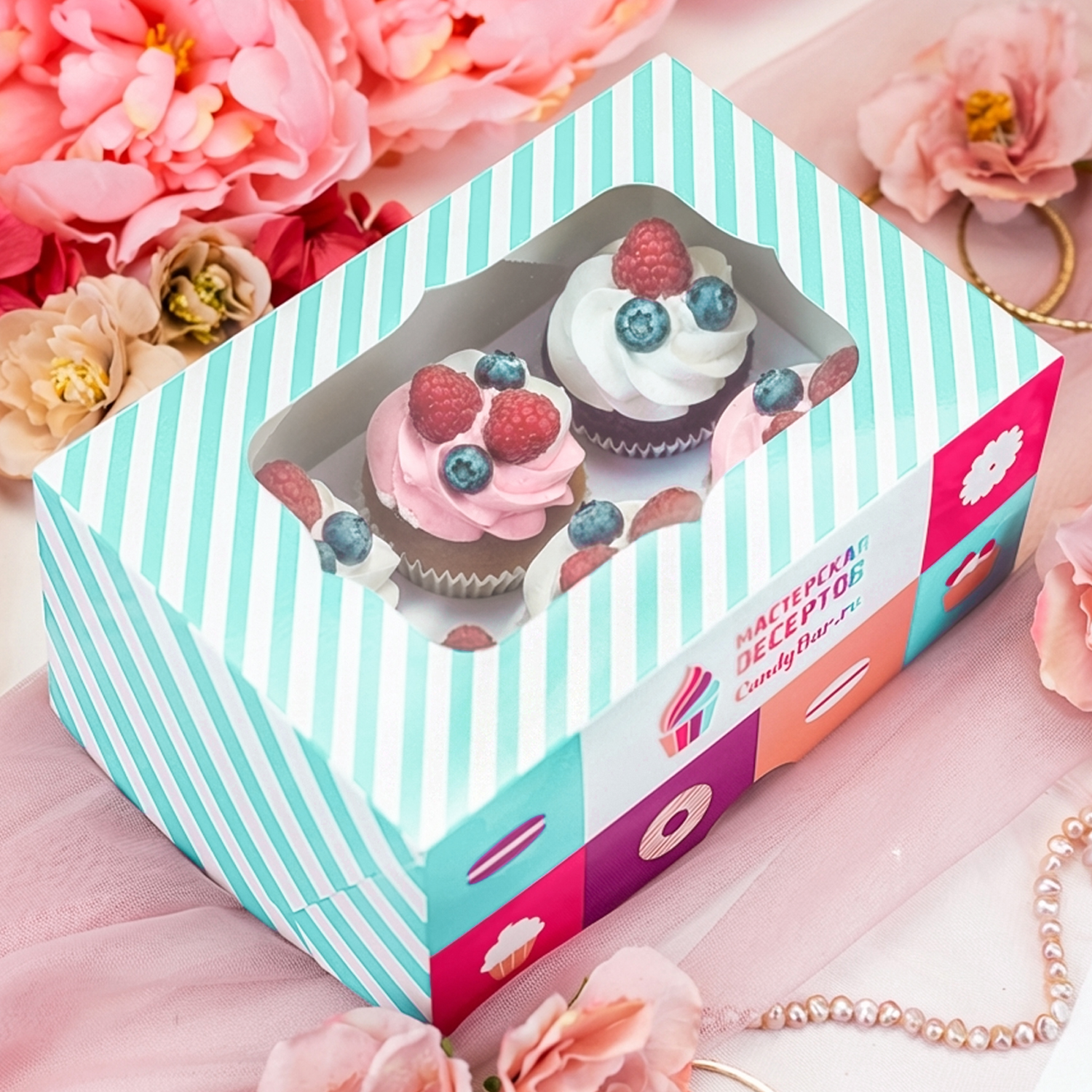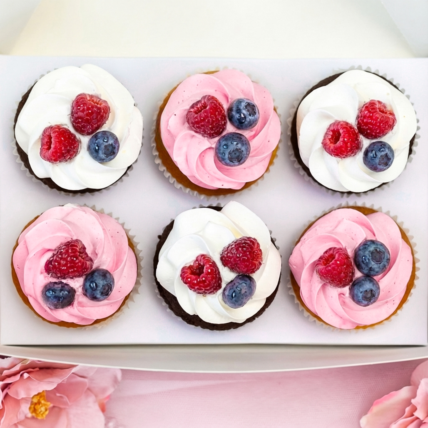 Все описаниеНебольшой набор капкейков с шапочками крема и свежими ягодами