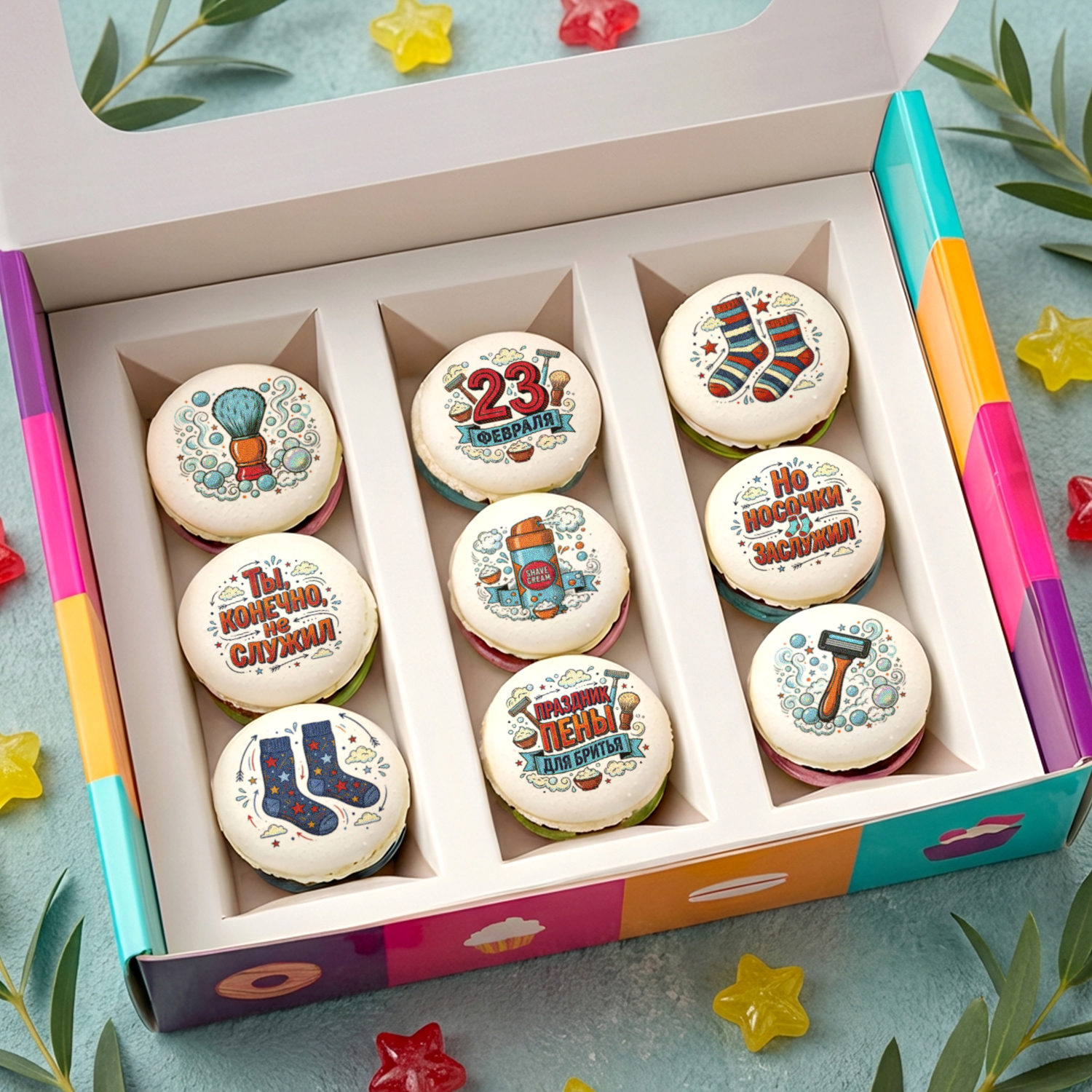 - Сахарная пудра, миндальная мука, белок, фруктовая начинка