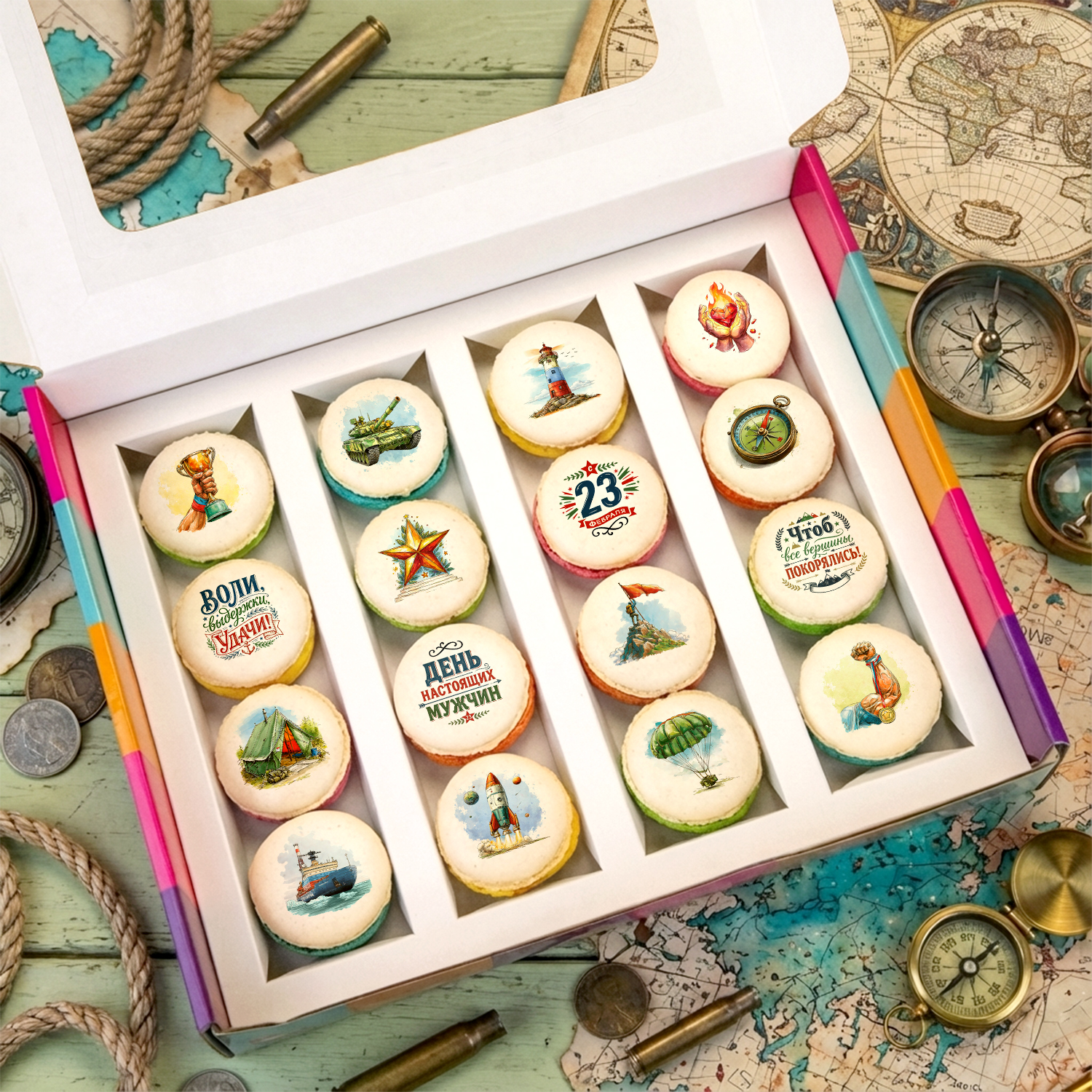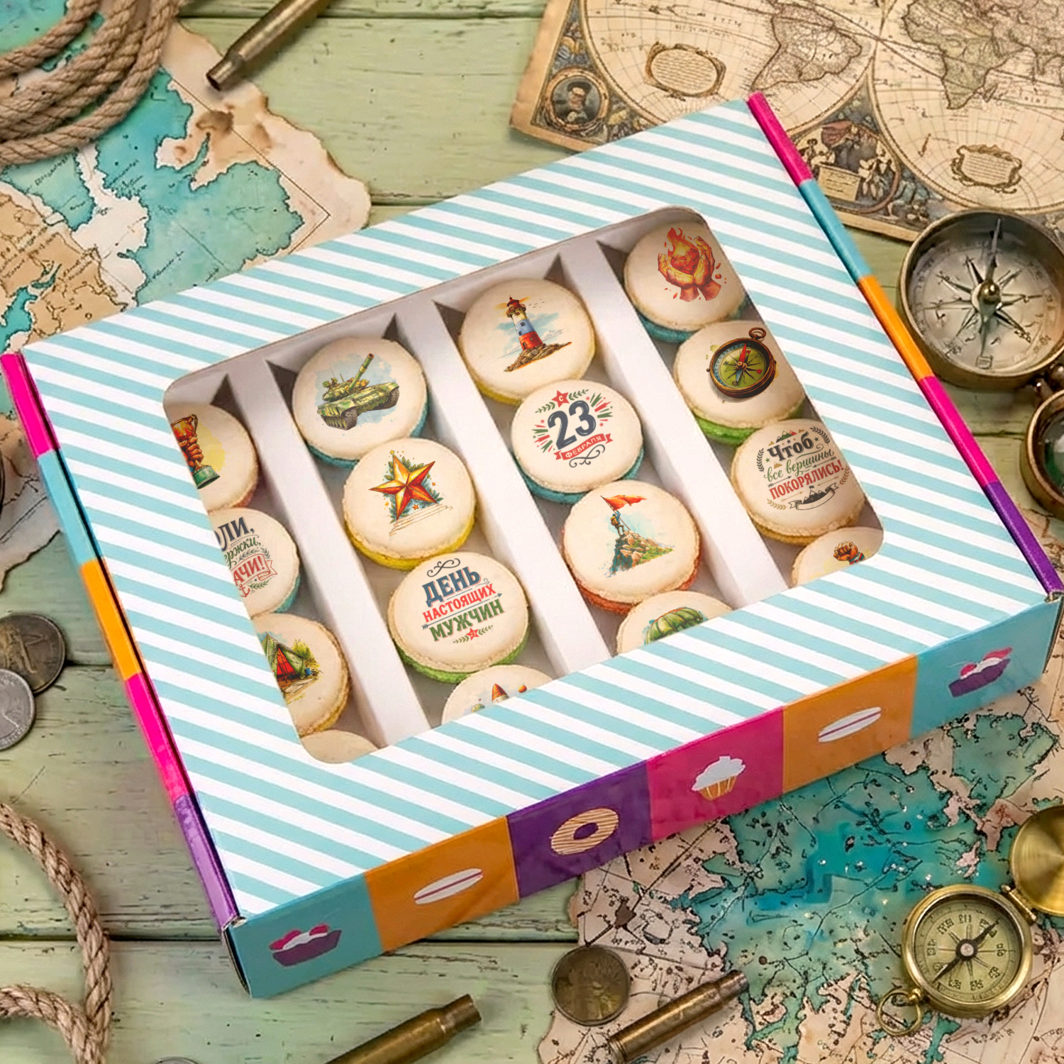 - Сахарная пудра, миндальная мука, белок, фруктовая начинка
