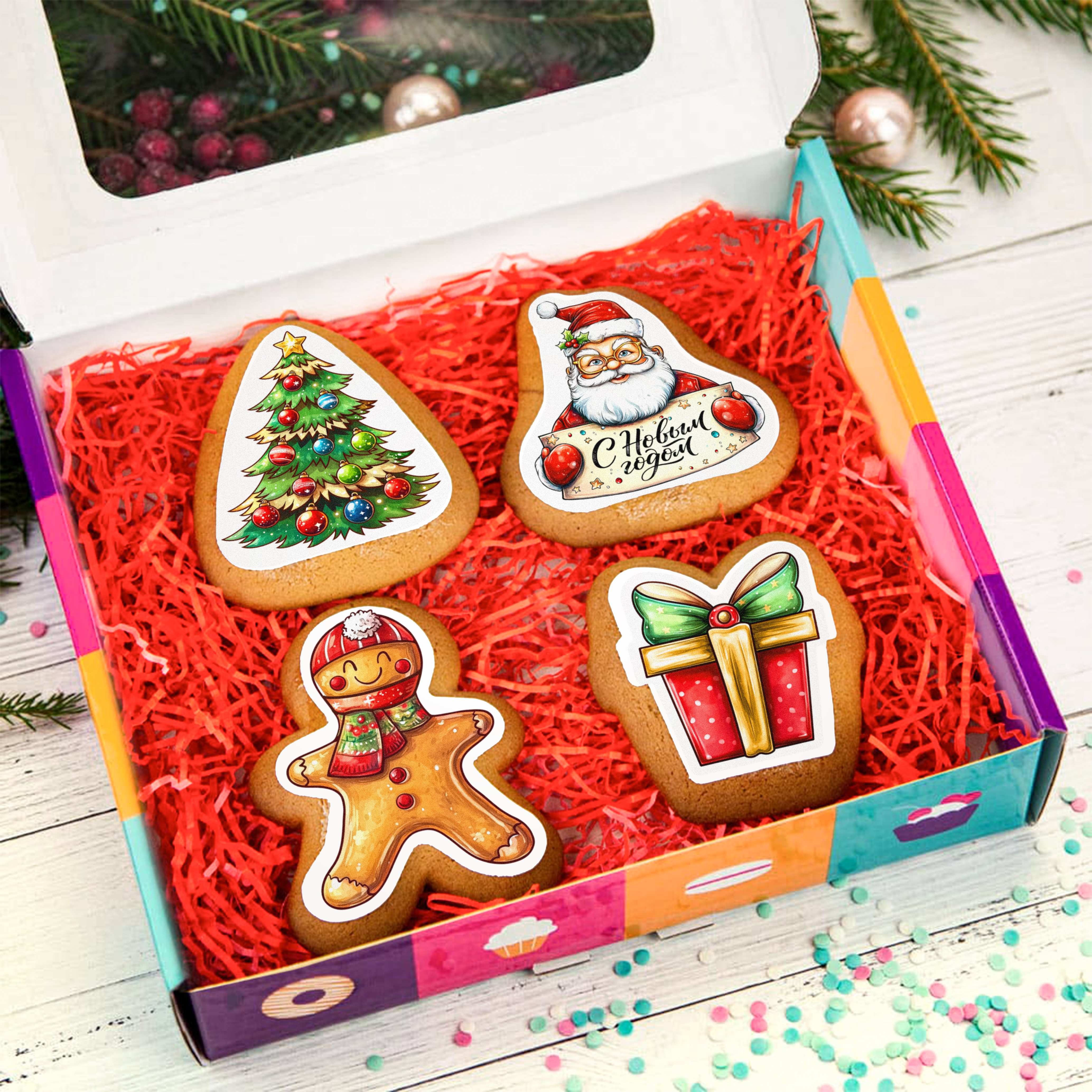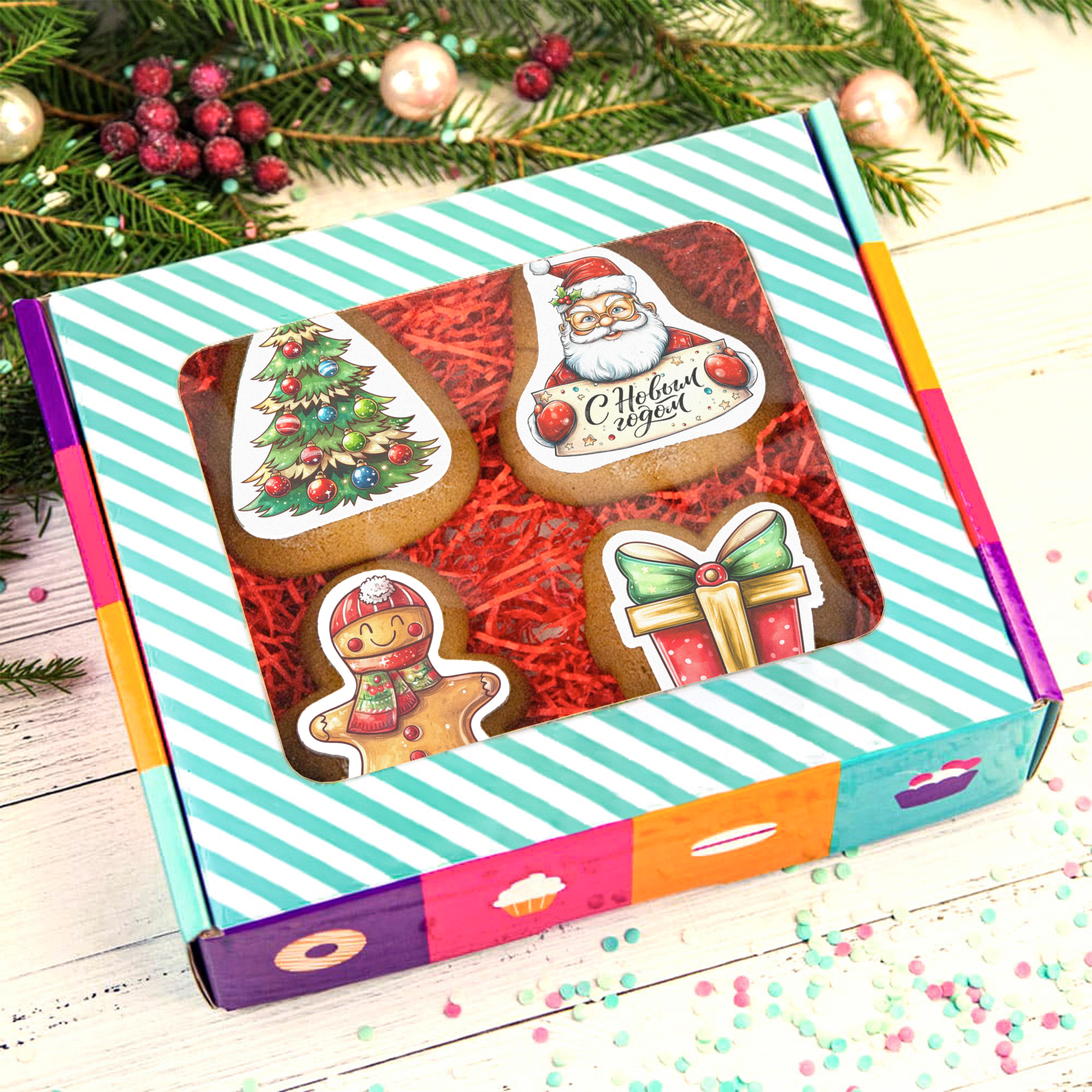 Новогодние пряники в красивой коробочке можно купить в Москве в нашей интернет-кондитерской в качестве недорогого подарка на Новый год.