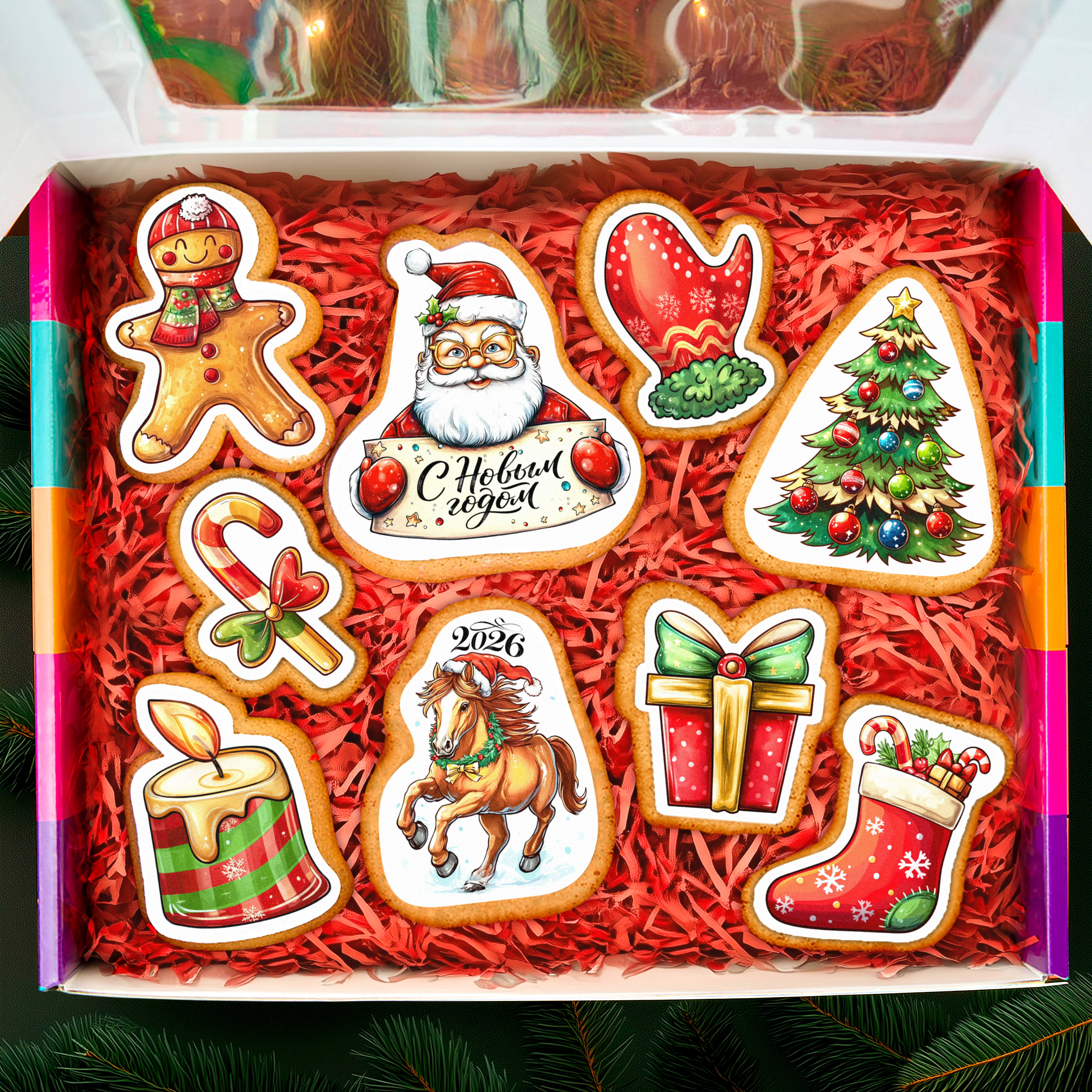 Новогодний подарочный набор имбирного печенья - пряники в форме символов Нового года в красивой коробке.